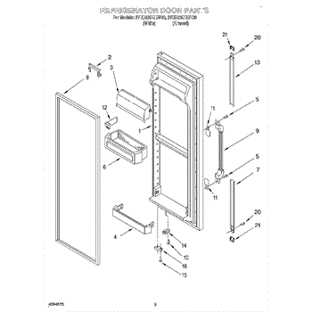 Door assembly, incluces inner and outer door panels along with door gasket.