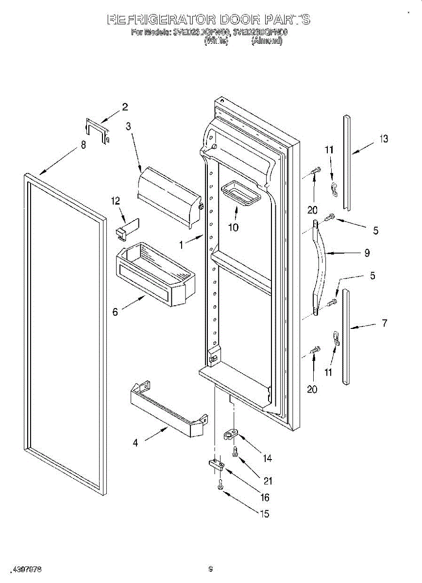 The Door Shelf is an OEM part for Whirlpool refrigerators. It provides additional storage space within the refrigerator door, allowing for the organization of smaller items like condiments, jars, and bottles.