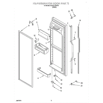 Door assembly, incluces inner and outer door panels along with door gasket.
