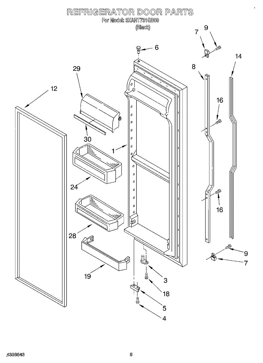 Door assembly, incluces inner and outer door panels along with door gasket.