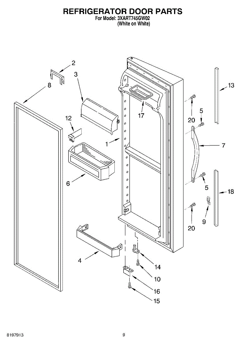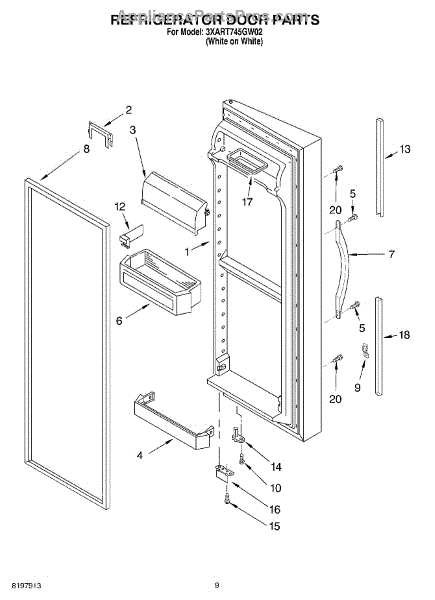 Parts for Whirlpool 3XART745GW02: 06 - Refrigerator Door Parts