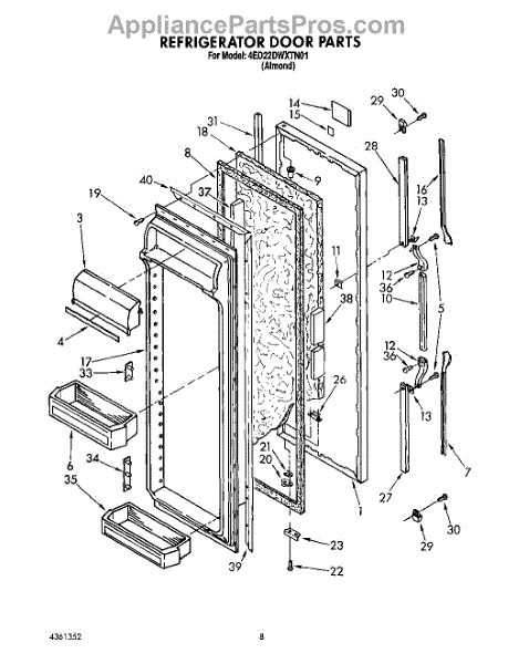 Parts for Whirlpool 4ED22DWXTN01: 07 - Refrigerator Door Parts