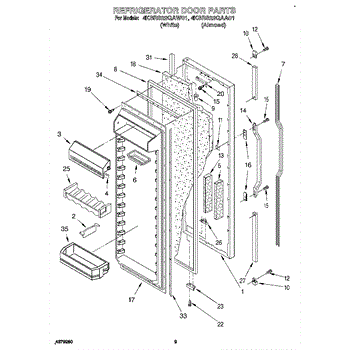 The Refrigerator Door Gasket is an OEM part for Whirlpool refrigerators. This gasket forms a seal around the refrigerator door, ensuring that cold air stays inside and warm air remains outside, maintaining the appliance's efficiency and keeping food fresh.