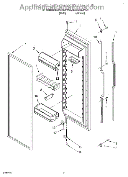 Parts for Whirlpool 4KSRS22QFA01: 06 - Refrigerator Door Parts