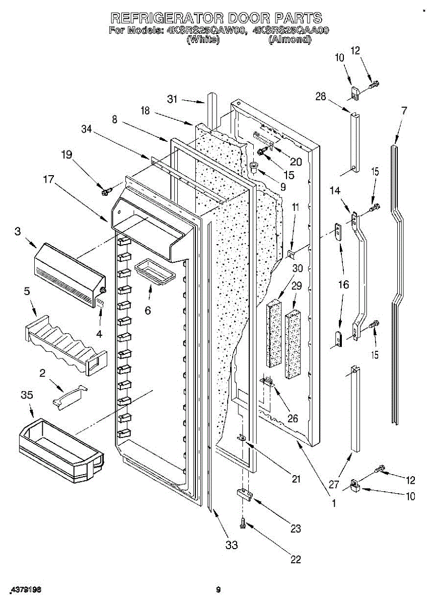Parts for Whirlpool 4KSRS25QAW00: 06 - Refrigerator Door Parts