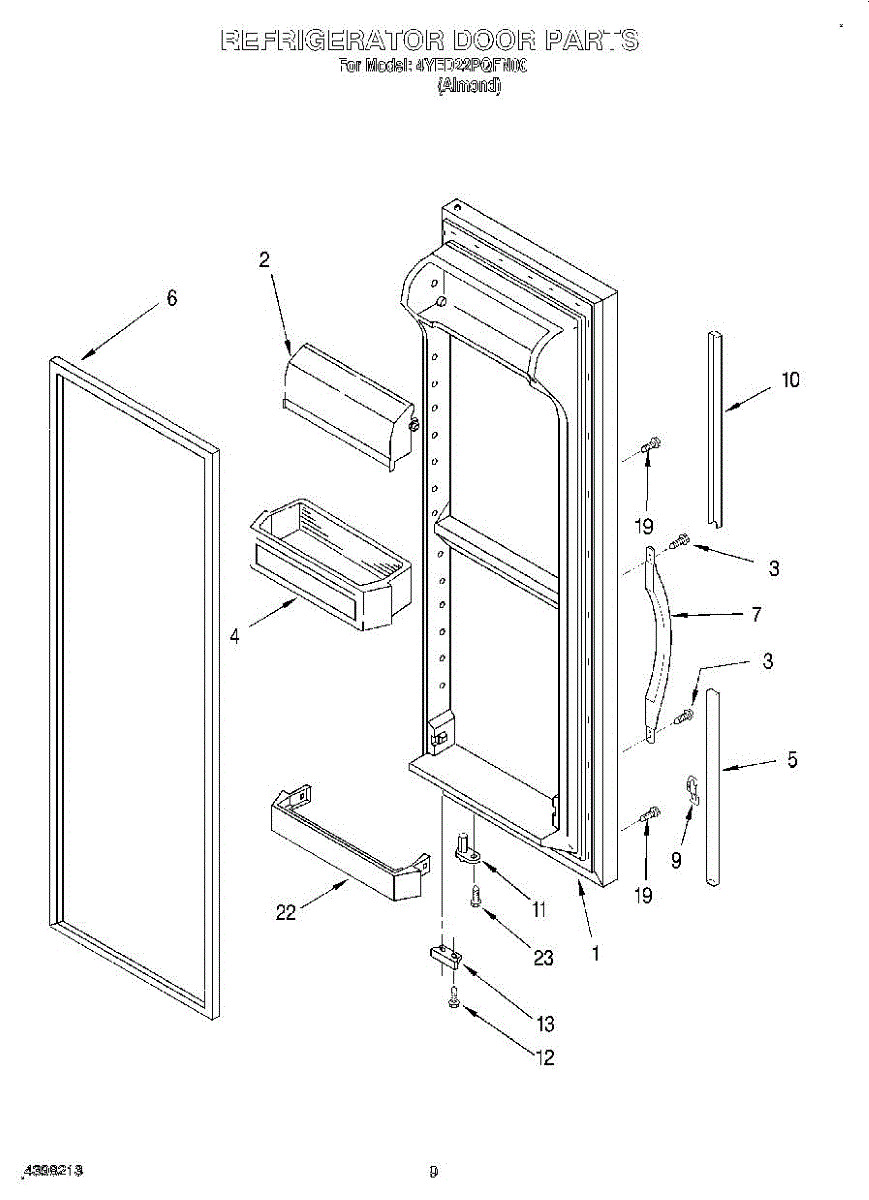 Door assembly, incluces inner and outer door panels along with door gasket.