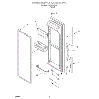 Door assembly, incluces inner and outer door panels along with door gasket.