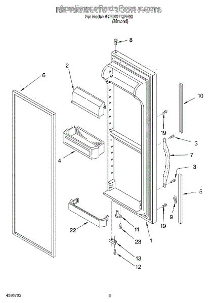 Door assembly, incluces inner and outer door panels along with door gasket.