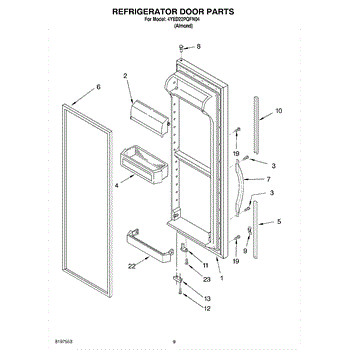Door assembly, incluces inner and outer door panels along with door gasket.
