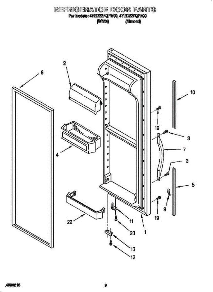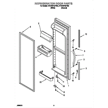 Door assembly, incluces inner and outer door panels along with door gasket.