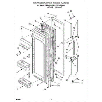 The Refrigerator Door Gasket is an OEM part for Whirlpool refrigerators. This gasket forms a seal around the refrigerator door, ensuring that cold air stays inside and warm air remains outside, maintaining the appliance's efficiency and keeping food fresh.