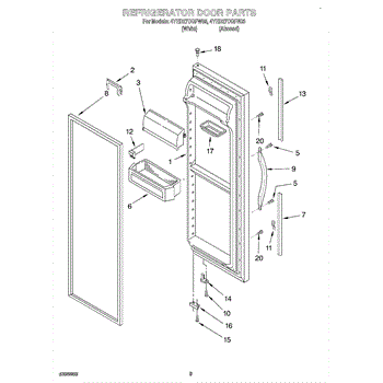 Parts for Whirlpool 4YED27DQFW03: 06 - Refrigerator Door Parts