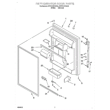 The Door Bin is an OEM replacement part for Whirlpool refrigerators. It is a removable plastic storage bin mounted inside the upper refrigerator door. This bin provides convenient access for eggs, condiments, and other small items with the door open.