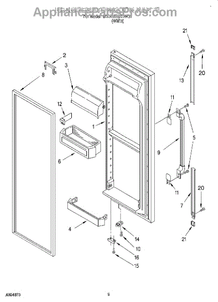 Door assembly, incluces inner and outer door panels along with door gasket.