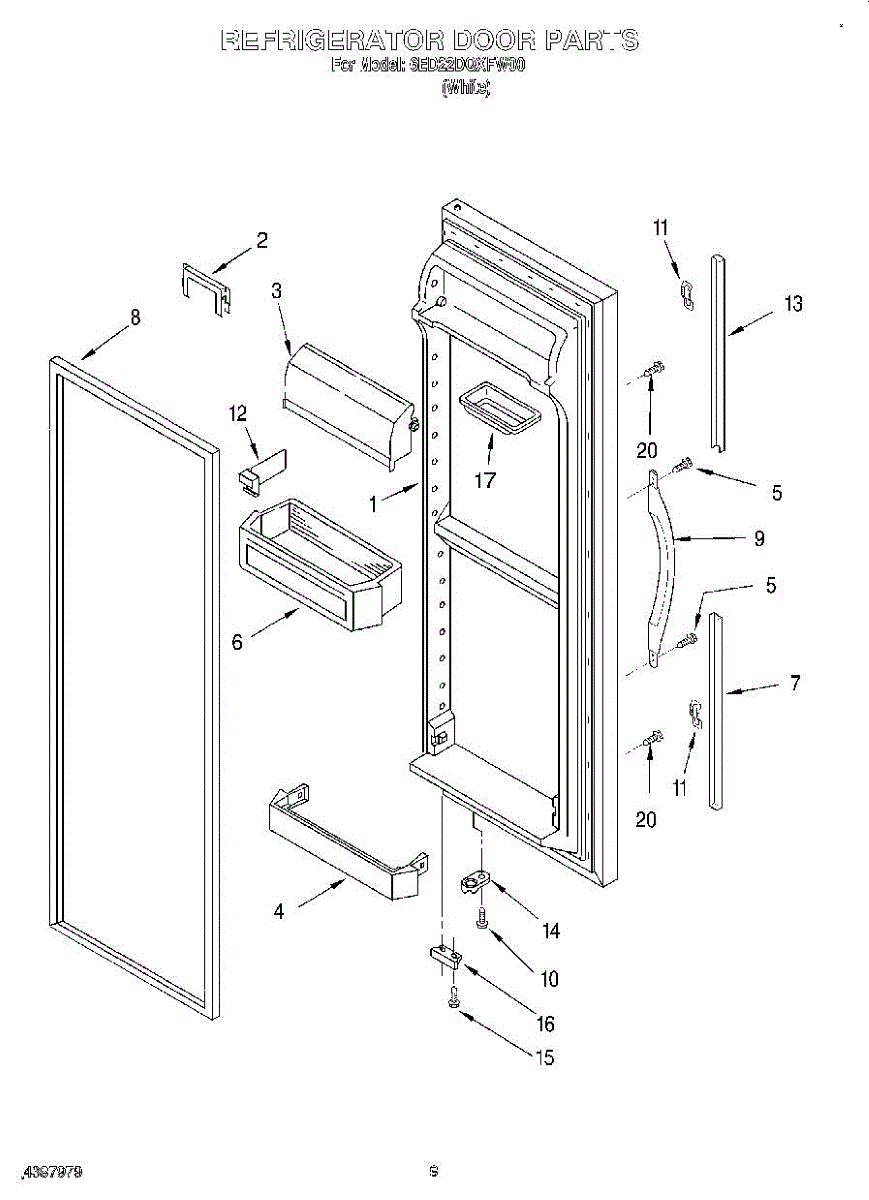 The Door Shelf is an OEM part for Whirlpool refrigerators. It provides additional storage space within the refrigerator door, allowing for the organization of smaller items like condiments, jars, and bottles.