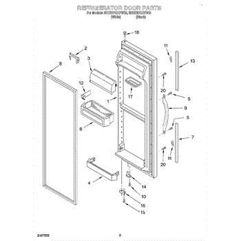 Door assembly, incluces inner and outer door panels along with door gasket.