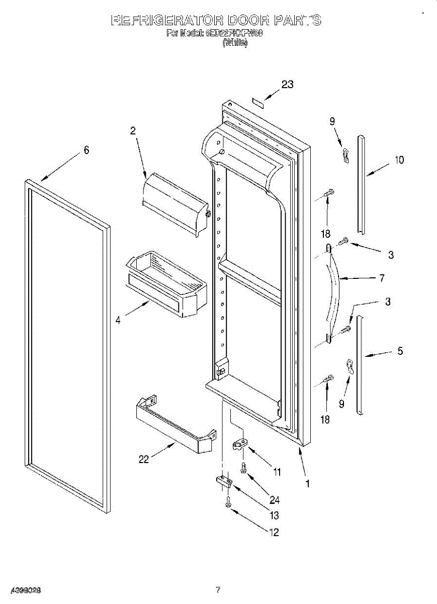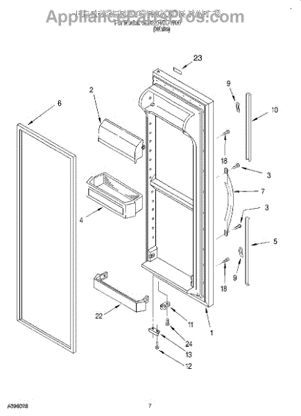 Door assembly, incluces inner and outer door panels along with door gasket.