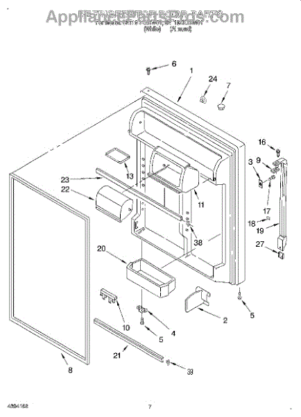 Parts for Whirlpool 6ET19DKXDW01: 04 - Refrigerator Door Parts