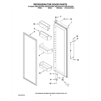 The Door bin is an OEM replacement part for Whirlpool refrigerators. It is a component located inside the refrigerator door that provides storage for small items like condiments, eggs, or milk cartons. The door bin is designed with convenient dividers and slots to securely organize a variety of items within easy reach on the refrigerator door.