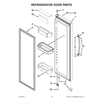 The Door bin is an OEM replacement part for Whirlpool refrigerators. It is a component located inside the refrigerator door that provides storage for small items like condiments, eggs, or milk cartons. The door bin is designed with convenient dividers and slots to securely organize a variety of items within easy reach on the refrigerator door.