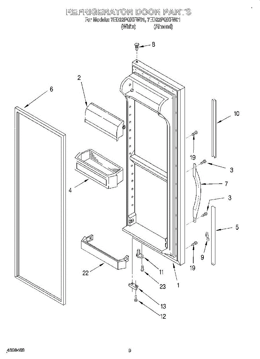 Parts for Whirlpool 7ED22PQXFN01: 07 - Refrigerator Door Parts