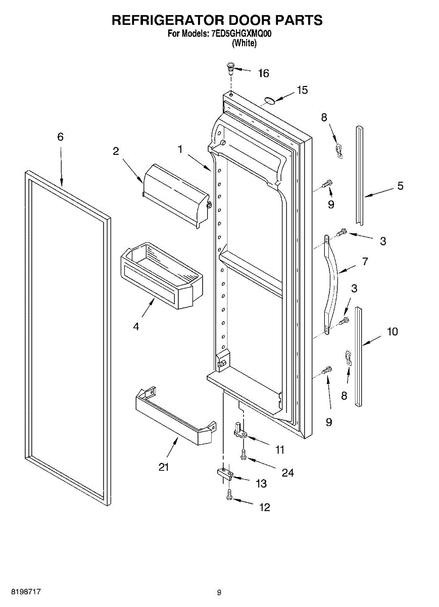 Parts for Whirlpool 7ED5GHGXMQ00: 06 - Refrigerator Door Parts