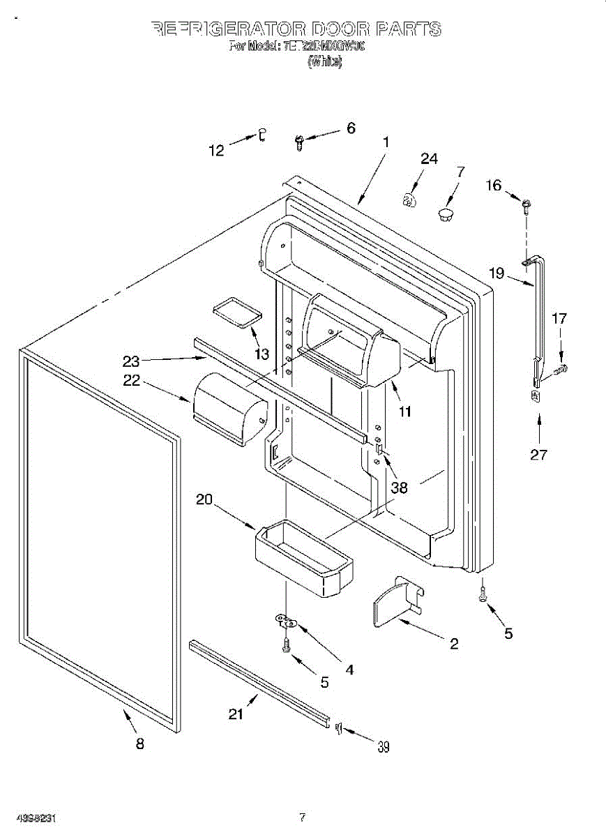 The Door Bin is an OEM replacement part for Whirlpool refrigerators. It is a removable plastic storage bin mounted inside the upper refrigerator door. This bin provides convenient access for eggs, condiments, and other small items with the door open.
