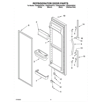 Parts for Whirlpool 7GS6SHAXKS01: 06 - Refrigerator Door Parts