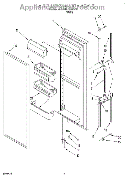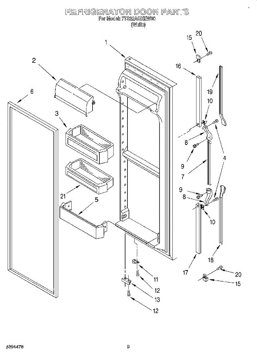 Parts for Whirlpool 7TS22AQXEW00: 07 - Refrigerator Door Parts