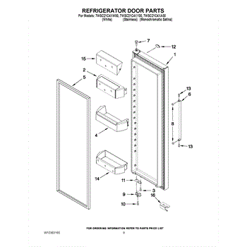 The Door bin is an OEM replacement part for Whirlpool refrigerators. It is a component located inside the refrigerator door that provides storage for small items like condiments, eggs, or milk cartons. The door bin is designed with convenient dividers and slots to securely organize a variety of items within easy reach on the refrigerator door.