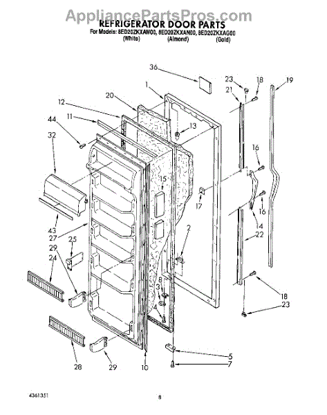 Parts for Whirlpool 8ED20ZKXAG00: 06 - Refrigerator Door Parts