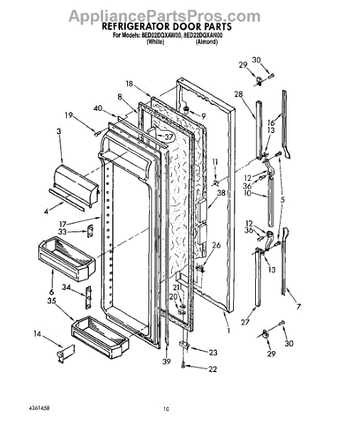The Refrigerator Door Gasket is an OEM part for Whirlpool refrigerators. This gasket forms a seal around the refrigerator door, ensuring that cold air stays inside and warm air remains outside, maintaining the appliance's efficiency and keeping food fresh.
