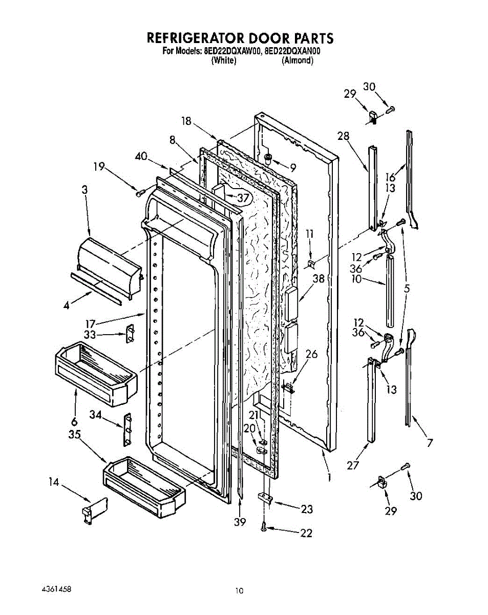 The Refrigerator Door Gasket is an OEM part for Whirlpool refrigerators. This gasket forms a seal around the refrigerator door, ensuring that cold air stays inside and warm air remains outside, maintaining the appliance's efficiency and keeping food fresh.