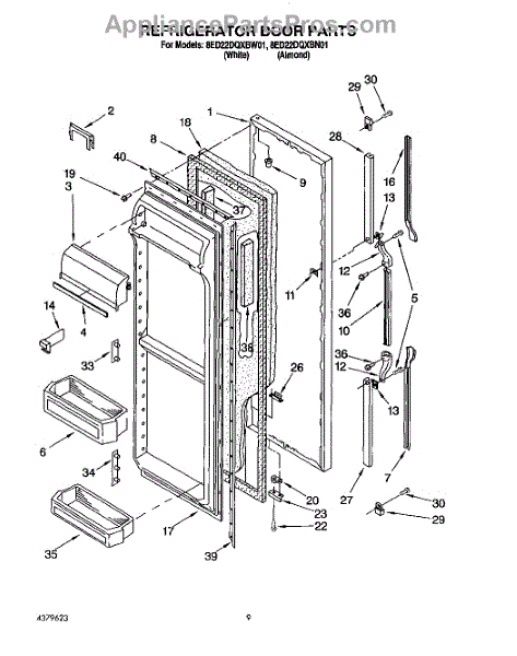 Parts for Whirlpool 8ED22DQXBN01: 07 - Refrigerator Door Parts