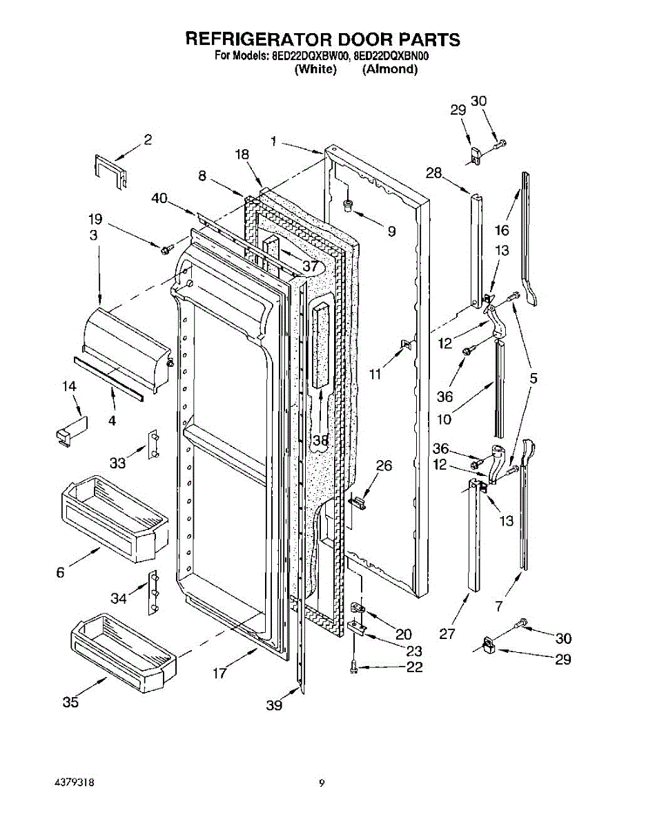 Parts for Whirlpool 8ED22DQXBW00: 07 - Refrigerator Door Parts