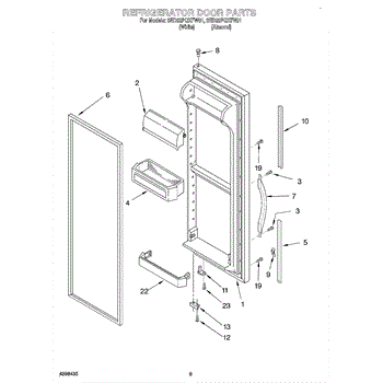Door assembly, incluces inner and outer door panels along with door gasket.