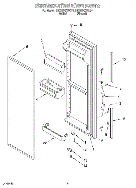 Parts for Whirlpool 8ED22PQXFN04: 07 - Refrigerator Door Parts