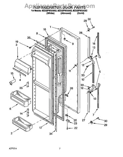 Parts for Whirlpool 8ED22PWXAG02: 06 - Refrigerator Door Parts