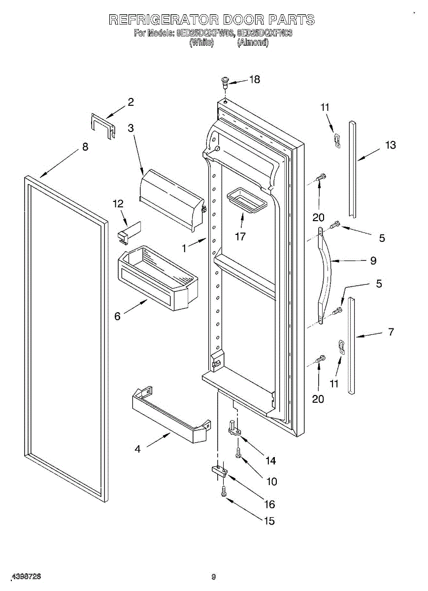 Parts for Whirlpool 8ED25DQXFW03: 06 - Refrigerator Door Parts