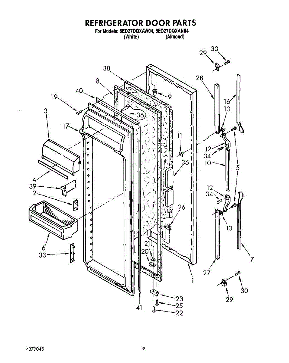 This screw is used to secure the handle end cap to the center of the door. The screw size measures 8-18 x 1/2 inches.