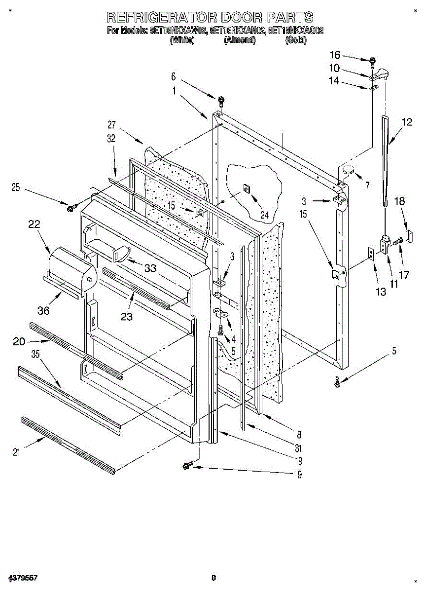 Parts for Whirlpool 8ET18NKXAN02: 07 - Refrigerator Door, Lit / Optional Parts