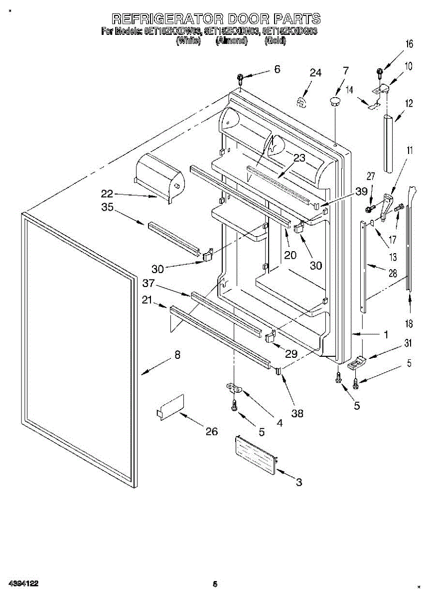 Parts for Whirlpool 8ET18ZKXDN03: 04 - Refrigerator Door Parts