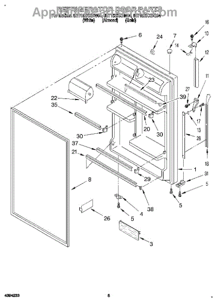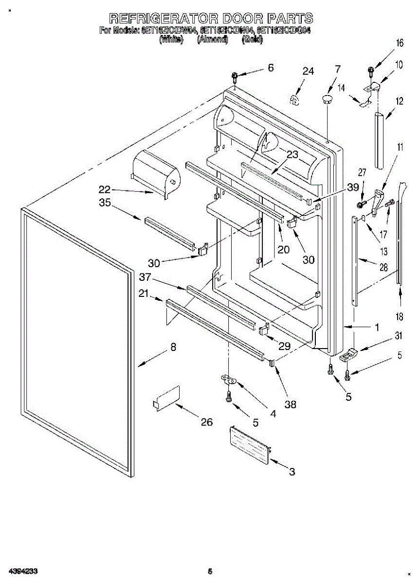 Parts for Whirlpool 8ET18ZKXDW04: 04 - Refrigerator Door Parts