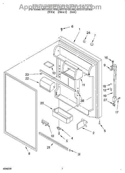 The Door Bin is an OEM replacement part for Whirlpool refrigerators. It is a removable plastic storage bin mounted inside the upper refrigerator door. This bin provides convenient access for eggs, condiments, and other small items with the door open.