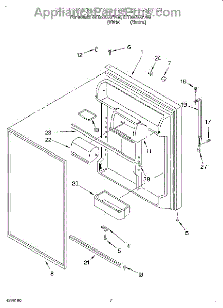 Parts for Whirlpool 8ET22DKXFN02: 04 - Refrigerator Door Parts
