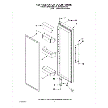 The Door bin is an OEM replacement part for Whirlpool refrigerators. It is a component located inside the refrigerator door that provides storage for small items like condiments, eggs, or milk cartons. The door bin is designed with convenient dividers and slots to securely organize a variety of items within easy reach on the refrigerator door.