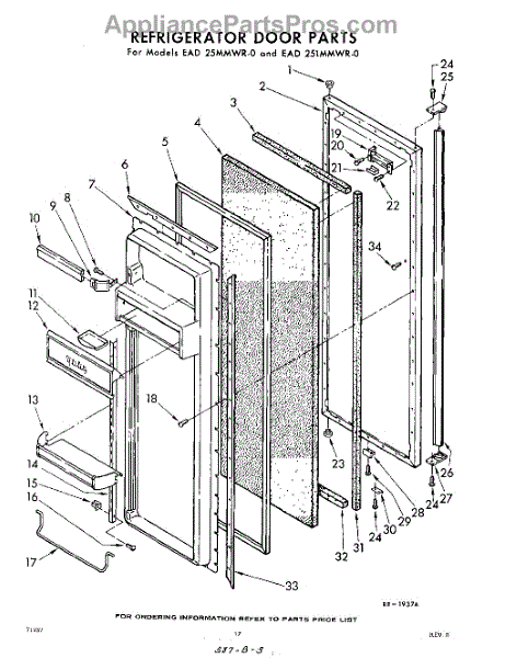 Parts for Whirlpool EAD25MMWR0: 17 - Refrigerator Door Parts