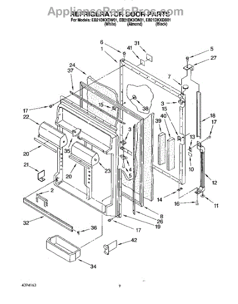 Parts for Whirlpool EB21DKXDB01: 06 - Refrigerator Door Parts