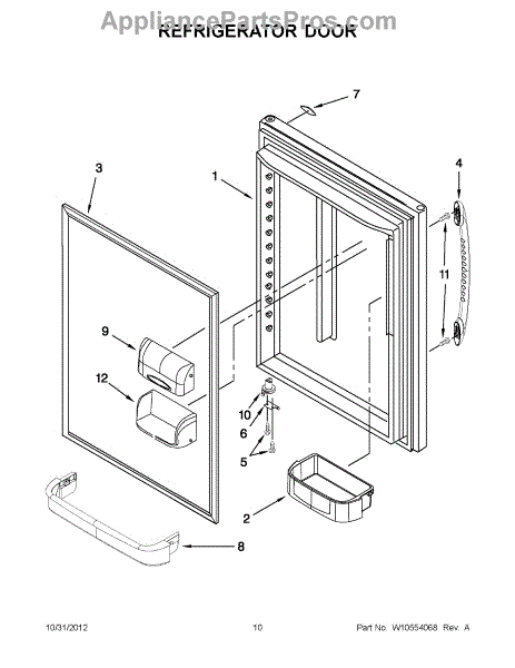 The Door Closure is an OEM replacement part for Whirlpool refrigerators. It is a small component that the door rides on that allows it to open and close properly. Causes of impaired operation involve age-related spring coil fatigue, dislodged or cracked plastic housing pieces, or confined door alignment stripping closure grooves. Symptoms of a faulty closure include: