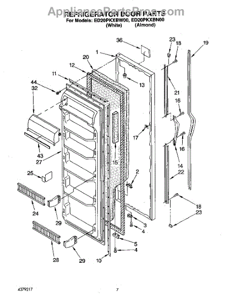 Parts for Whirlpool ED20PKXBW00: 04 - Refrigerator Door Parts